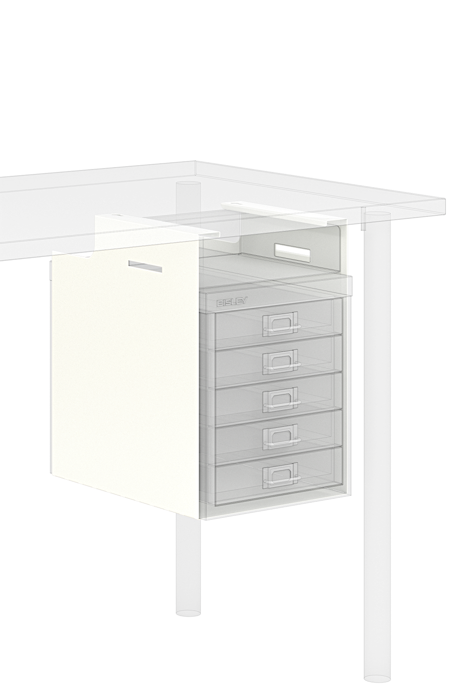 Steel, desk-attached MultiDrawer bracket that is compatible with a 12 Series MultiDrawer.
