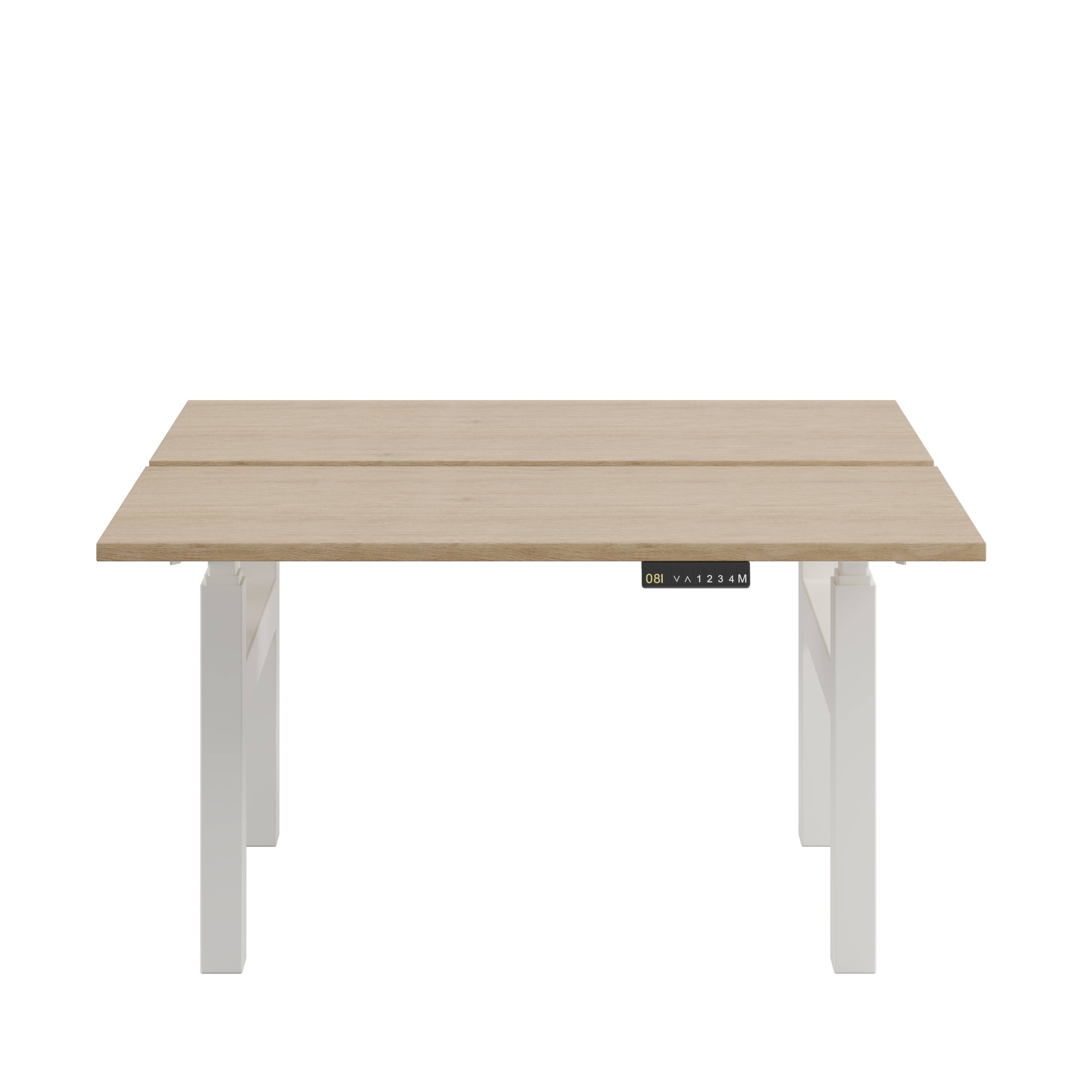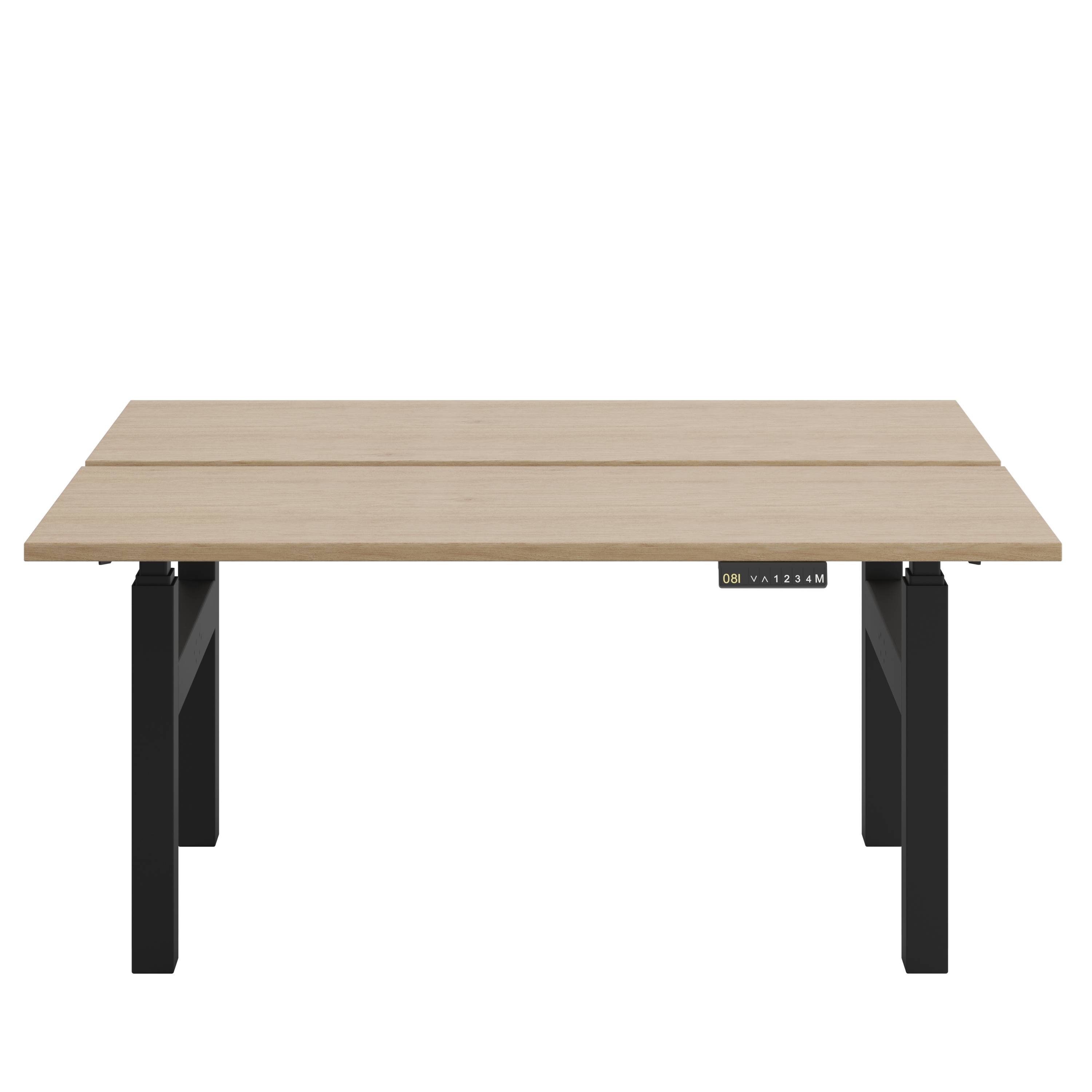 A twin electric height adjustable desk, supporting two fully functioning workstations. A perfect solution when maximising the space in a small office setting, these desks can be banked together to create a more collaborative team workspace in a larger open-plan office.