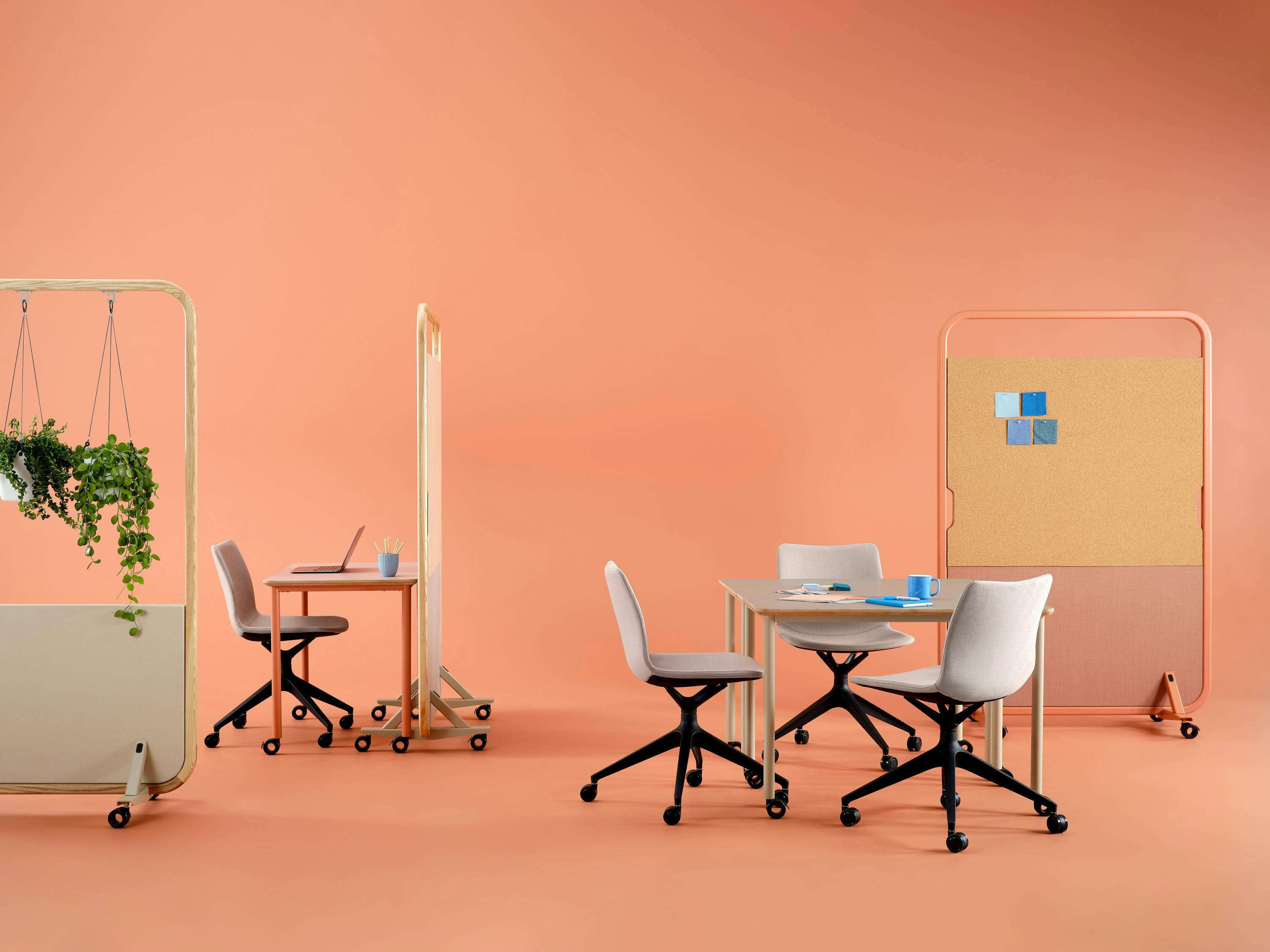 Avec son assortiment élégant d'écrans et de bureaux mobiles, Arches vous permet d'adapter votre environnement à vos besoins. Qu'il s'agisse d'espaces de travail individuels calmes et concentrés ou de vastes zones d'échanges dynamiques, la collection Arches peut être configurée pour inclure tout le monde, favorisant ainsi l'inclusion et le bien-être.
