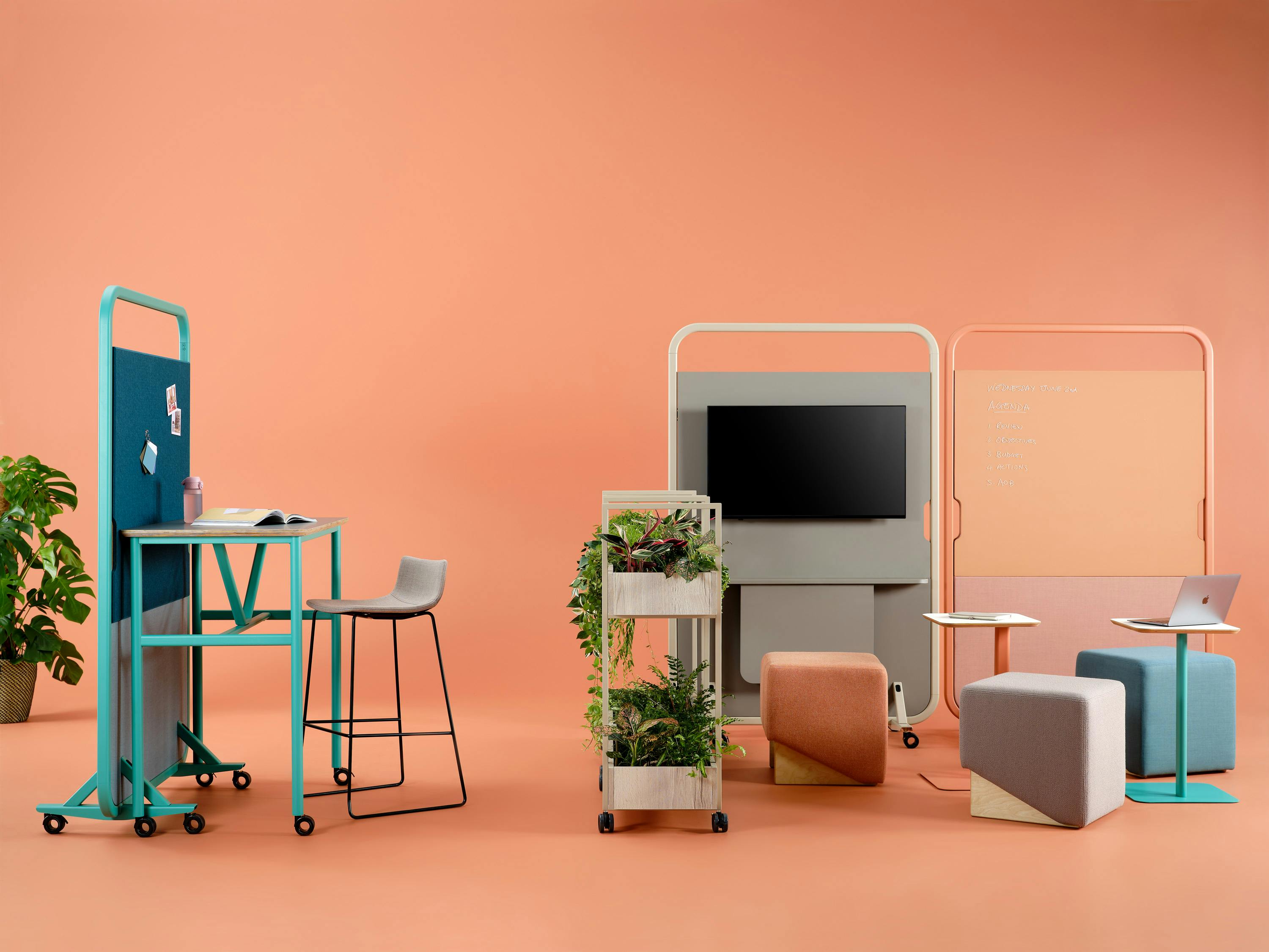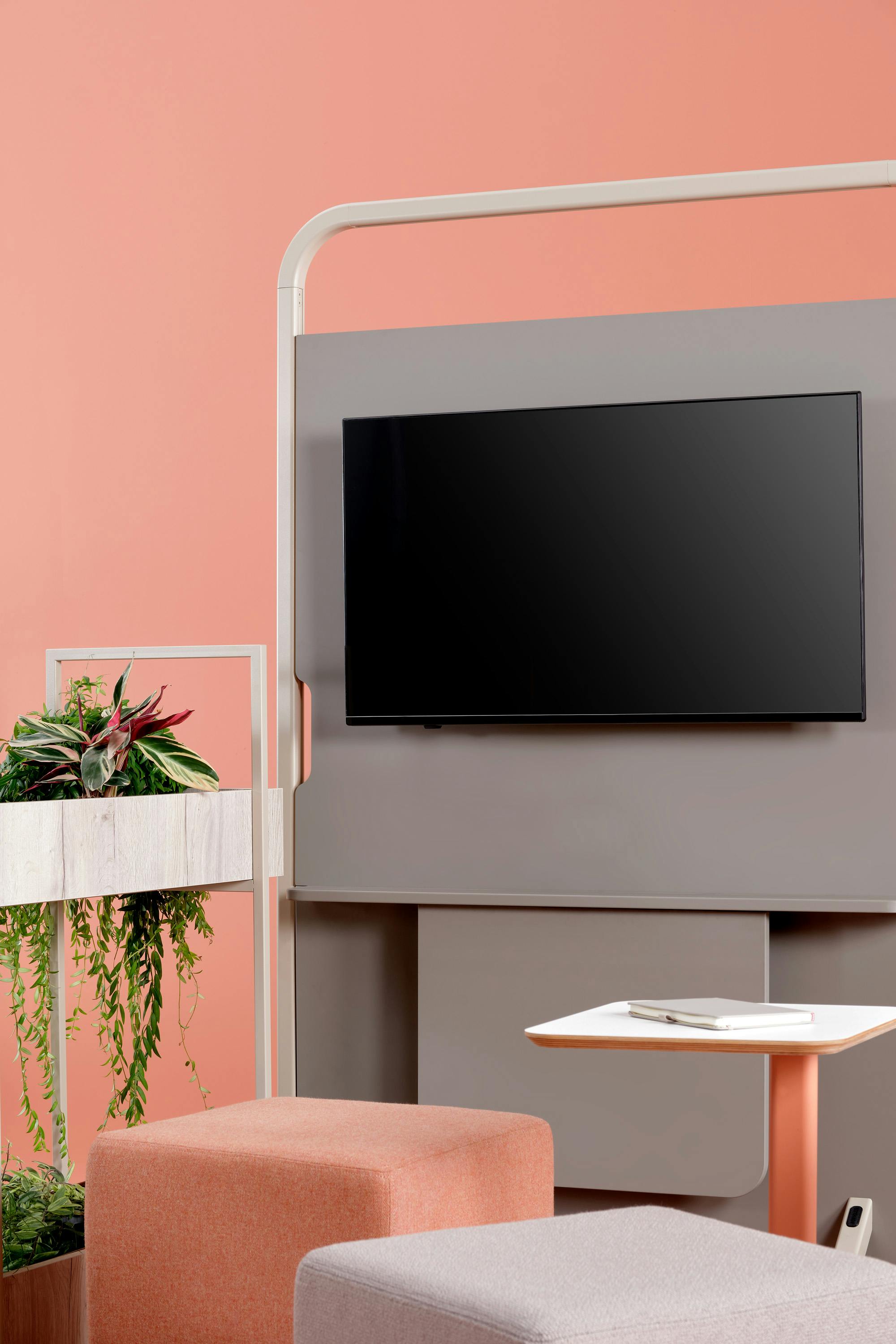 Arches vous offre la possibilité d'intégrer une unité média, disponible en option avec une prise de courant ou une batterie mobile. L'ajout d'un écran permet de projeter rapidement et facilement vos présentations lors d'une réunion ou d'un atelier.