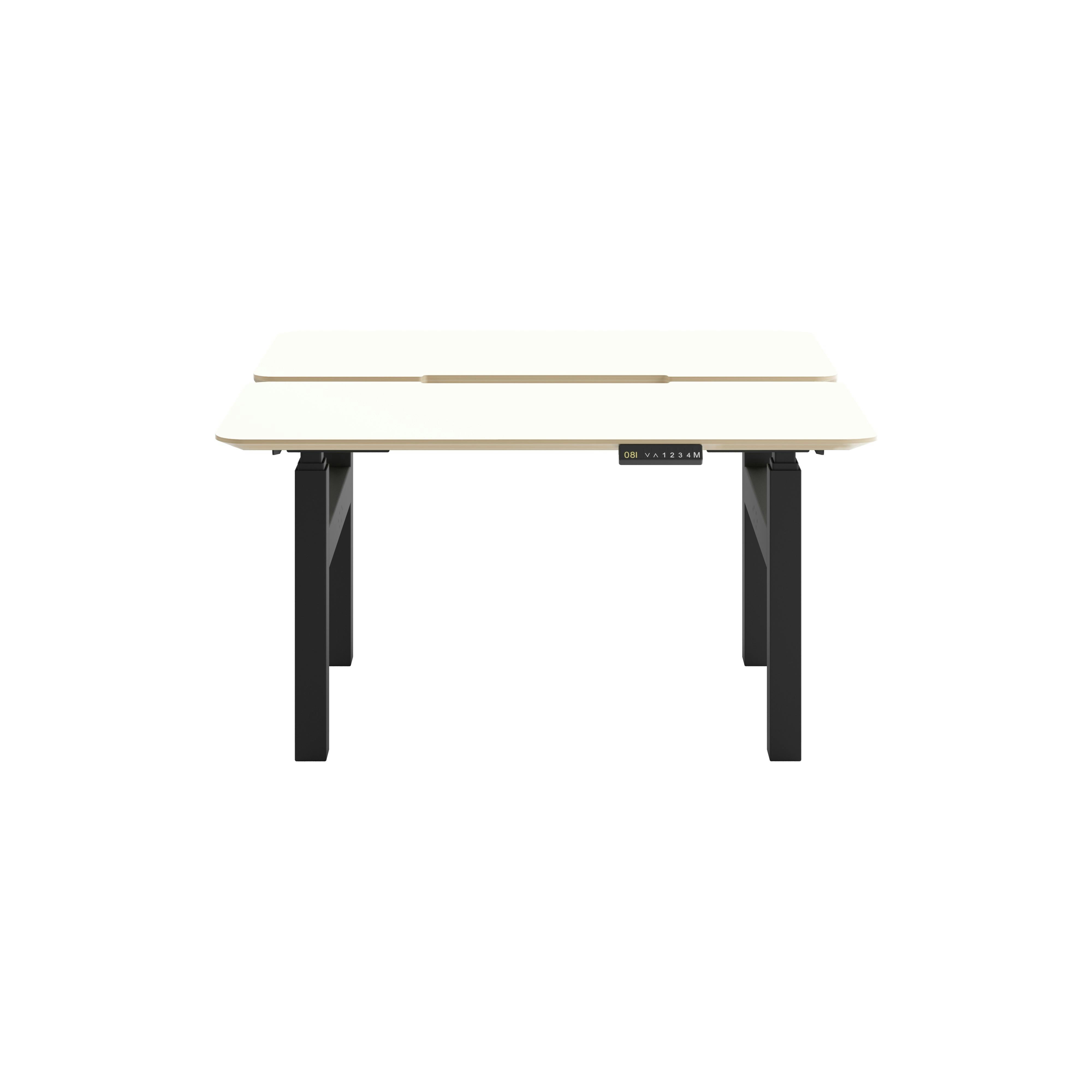 A twin electric height adjustable desk, supporting two fully functioning workstations. A perfect solution when maximising the space in a small office setting, these desks can be banked together to create a more collaborative team workspace in a larger open-plan office.