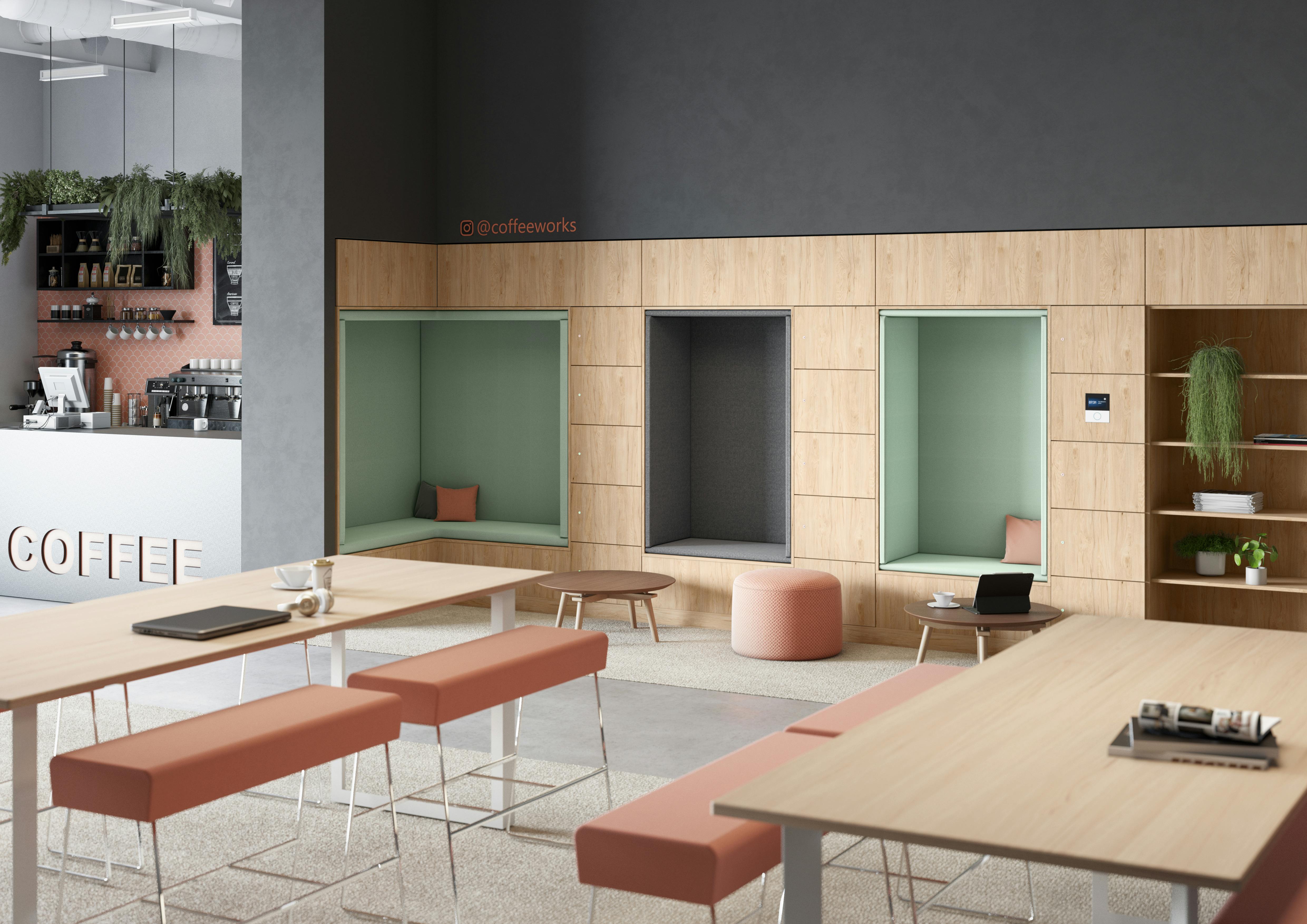 LockerWall is not just a storage system; the lower height lockers create zoning and space division, giving a workplace defined neighbourhoods. The standing height options double up as an impromptu work surface, or they can be accessorised with planters to bring in mood boosting biophilia.